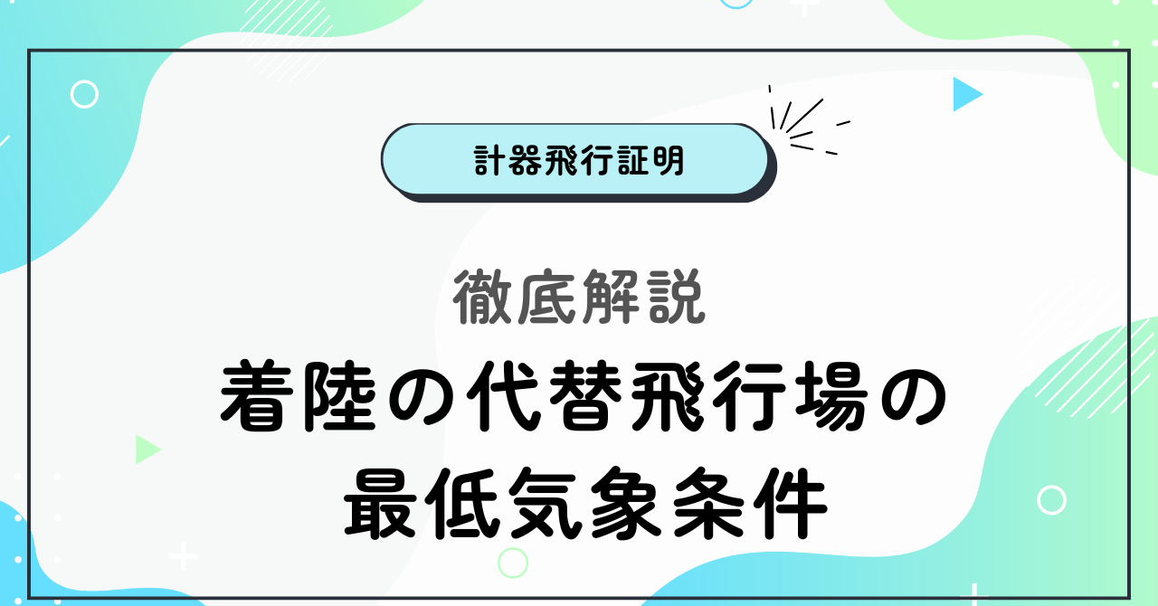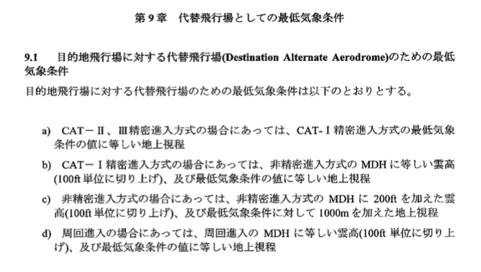 今回は代替空港の最低気象条件について取り扱っていきます。