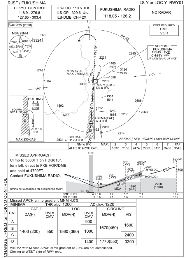 もしILS01のglide slope が故障していて、LOCを使用していた場合は視程が900m以上かつ雲高が1560ft以上である必要があります。