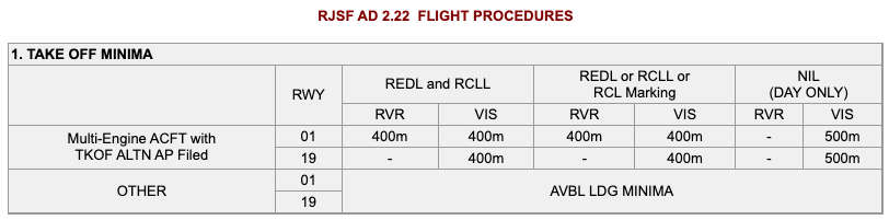 また各空港のテイクオフ・ミニマはAIPに記載されているので確認しましょう。