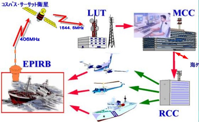 衛星から地上に信号を送ります。その受信する施設をLUT(local User Terminal 遭難信号地上受信局)といいます。